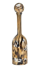 The Amalena Tall Bottle brings sculptural elegance to any room with its striking silhouette and captivating multicolor design. Standing at 24 inches high with a slender 6L x 6W profile, this art glass vessel showcases a mesmerizing blend of amber, black, and cream tones that swirl together in a unique tortoiseshell-like pattern. The bottle features a distinctive elongated neck crowned with a translucent sphere, creating visual interest and artistic flair. Perfect for modern, eclectic, or transitional interiors, this statement piece works beautifully as a standalone decorative object or paired with complementary vessels for a curated display. The handcrafted nature ensures no two pieces are exactly alike, making the Amalena Tall Bottle a truly distinctive addition to mantels, console tables, or shelving that adds sophisticated texture and visual depth to your home decor collection.