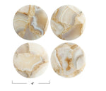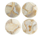 This set of four agate coasters, multi color is a beautiful and practical piece for any home. It consists of four round coasters that feature a natural agate surface with multi color patterns that create a stunning and unique effect. The agate surface is smooth and glossy, which means it can resist stains and scratches. The coasters are also easy to clean and maintain, and they will last for a long time. The coasters are versatile and can fit any style, from farmhouse to French country to art deco to coastal to glam. They can also be used in any room, such as the kitchen, dining room, living room, or office. The coasters measure 4 inches in diameter (Each one will vary due to the nature of the stone), making them suitable for any space. This set of four agate coasters, multi color is a must-have for anyone who loves style and uniqueness.