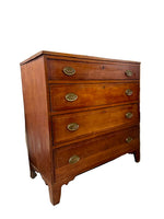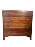 This vintage chest boasts inlaid drawer fronts, original hardware, and a warm whiskey finish. Surface markings show its age on the top and on the drawer runners. Overall in good condition with some repairs.