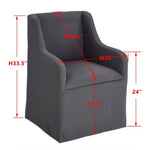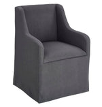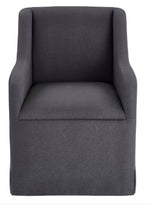 Indulge in luxurious comfort with our Barbaro Dining Chair. Crafted with perfect proportions and support, it seamlessly blends traditional style with a contemporary shape. The elegant drop arm design and floor-length fabric create a clean, polished look. Finished in our new charcoal color fabric, it effortlessly coordinates with other furnishings while adding a bold pop with its dark color.