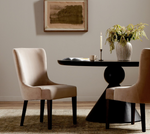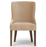 Velvety taupe upholstery pairs with solid parawood legs for an updated take on classic Italian design.