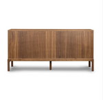 Inspired by campaign-style furniture of the 1800s — packable pieces first designed for traveling military use — a simply shaped dresser of natural walnut features a subtly inset top and rounded legs, finished with wooden hardware.