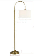 This metal floor lamp is perfect for the small spaces. Its slender neck and its curved design provides ideal reading light for your sofa, while the modern mid-century style, brass finish, and adjustable neck and height provide an updated timeless look. Complete with a round oatmeal-colored linen drum shade, this lamp exudes timeless charm and luxury , its hardback shade construction to top it all off.