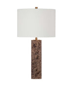 The Berrien Table Lamp brings a perfect blend of modern and traditional styles to your space. Its sleek brown marble base exudes a timeless elegance, while the crisp white linen drum shade softens the overall aesthetic, creating a versatile piece that can complement various decor styles. The 3-way switch adds functionality, allowing you to adjust the lighting to suit your mood or needs.