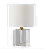 The Sloane Crystal Lamp is a sleek and modern accent piece with a timeless touch. At 12 inches tall, its solid crystal base is shaped into a crisp cube, creating a clean, structured look that plays with light beautifully. A polished metal accent adds a hint of warmth, while the white linen shade balances the design with a soft, airy feel. Perfect for adding a refined touch to nightstands, bookshelves, or side tables, this mini lamp blends simplicity with sophistication.