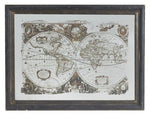 Enjoy a contemporary twist on classic wall art. This vintage-style world map stands out against its mirrored background for an intense sense of depth of dynamic appeal. This piece comes ready-to-hang in a 31″ dark frame with a subtle distressed finish.