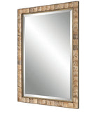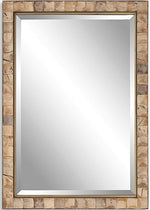 This rectangular mirror showcases an iron strap frame finished in dark gold, accented by concaved, polished coconut shells inlays. Each shell may vary slightly in color, adding to its authenticity and character. The mirror features a generous 1 1/4" bevel and may be hung horizontal or vertical.