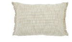 This lumbar pillow is made from 100% cotton and is accentuated with fringed edges, enhancing its aesthetic appeal. It is filled with feathers and down, providing supportive comfort. The design includes a hidden zipper closure at the back for convenience. Suitable for dry cleaning, this pillow combines functionality with decorative flair.