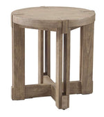 The McGuire End Table seamlessly blends modern rustic farmhouse charm with enduring craftsmanship. Crafted from solid mindi wood in a natural finish. The distinctive interlocking wood beams in the base create an open, airy feel while maintaining a substantial presence. The natural finish adds warmth and authenticity to your surroundings.