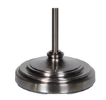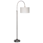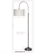 Bring a modern vintage style to any setting with the Porter floor lamp. a striking addition to any space, offering both sophistication and functionality. Its curved design provides ideal reading light for your sofa, while the modern mid-century style, Pewter finish, and adjustable neck and height provide an updated timeless look. Complete with a round white linen drum shade, this lamp exudes timeless charm with its hardback shade construction.