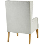 The high back, side wings, and squared arms seamlessly blend to create a timeless piece, complemented by Talc fabric