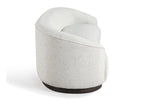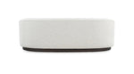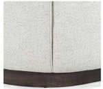 Upholstered in soft fabric, its curved silhouette and clean lines create a striking, sculptural design.