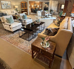 • Monochromatic graphic pattern of rhythmic geometric elements printed on a sophisticated linen blend