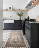 Add a splash of class to your hallway or kitchen with this elegant reproduction of a fine oriental rug.  Kid and dog friendly!  Power Loomed,100% Polyester face with cotton backing.