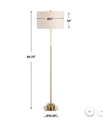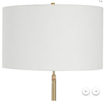 Its adjustable neck allows it to go from a 53" tall reading lamp to a 70" tall floor lamp, finished in a plated brushed antique brass and a white linen fabric drum.