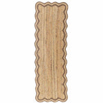 Hand braided jute with a fun scalloped edge makes this rug perfect for a hallway or kitchen...but don't spill anything because natural rugs don't clean very well. Latex backing.